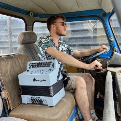 Elouann Pannetier fait ses premiers pas à l’accordéon diatonique en 2010 à l’ école de musique de Gannat. Finalement, c’est un peu par hasard qu’il est arrivé dans le monde des musiques traditionnelles et habitant à Espinasse-Vozelle, petit village du bourbonnais à la frontière de l’auvergne, il a ainsi hérité d’une double culture. Amoureux de la musique du Bourbonnais, il apprend également la vielle à roue et obtient son DEM d’accordéon diatonique en 2021 au conservatoire de Vichy. Il poursuit ses études dans la musique au Pôle Aliénor et fait ses premières expériences dans l’enseignement.